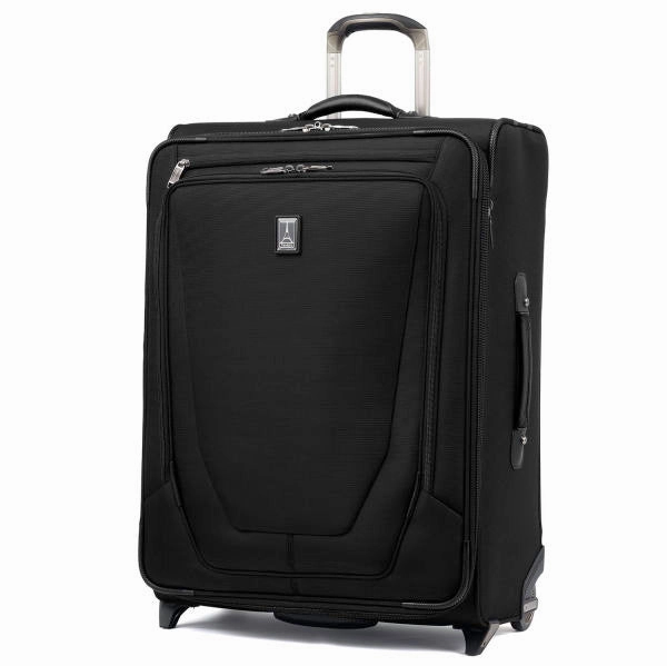 The Travelpro? Crew? 11 Expandable Rollaboard 26 has a suiter and an exterior USB port for on-the-go charging to connect your USB device to a power bank safely stored in a dedicated interior zippered pocket. This larger suitcase has plenty of room for longer trips and includes a 2 expansion if extra space is needed. Durable ballistic nylon material with DuraGuard? coating provides water, stain and scratch resistance. Crash-guard wheel housings and skid and molded corner guards ensure protection for the high performance sealed ball-bearing wheels that keep the bag rolling smoothly. Integrated 4-Point stability system prevents tipping when the bag is fully packed and standing upright. Inside, a roomy main compartment with self-repairing nylon coil zippers and an integrated suiter in a separate compartment has an extension panel for longer garments and a padded roll bar to keep clothes in place and wrinkle free. A convenient interior mesh pocket stores power cords and cables and a zippered wet pocket holds toiletries or wet clothing. A patented aluminium PowerScope extension handle reduces wobbling and features three stops at 38", 40" and extra-tall 42.5 lengths to accommodate travellers of all heights. This 26 suiter version updates the original Travelpro? Rollaboard? that airline pilots and flight crews have depended on for decades.